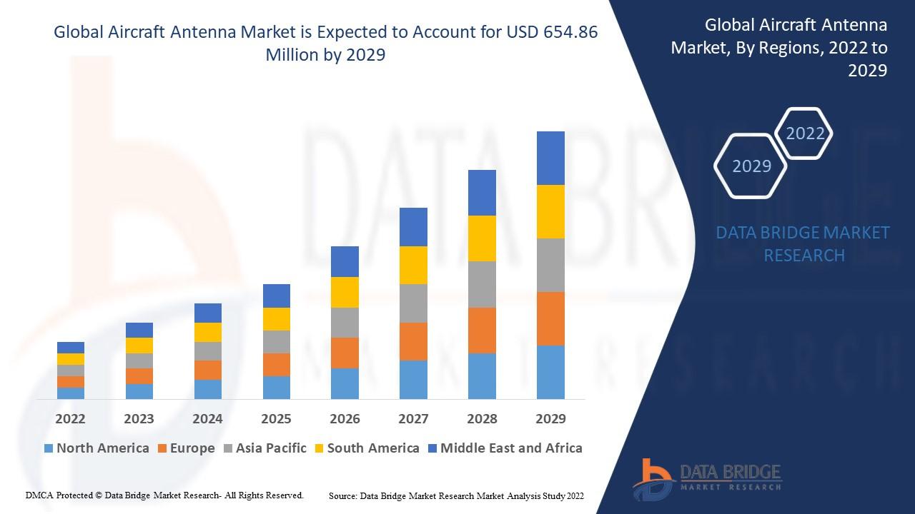 Global aircraft antenna market was valued at USD 389.50 million in 2021 and is expected to reach USD 654.86 million by 2029, registering a CAGR of 6.71% during the forecast period of 2022-2029