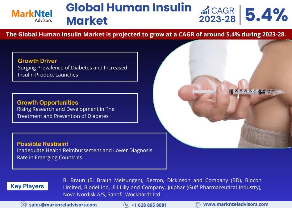 MarkNtel Advisors, a leading market research and consulting firm, has announced the release of its latest study titled Human Insulin Market Research Report: Forecast (2023-2028). This report provides a detailed assessment of the Human Insulin Market, covering its evolving dynamics, emerging trends, key growth drivers, major challenges, and competitive landscape.