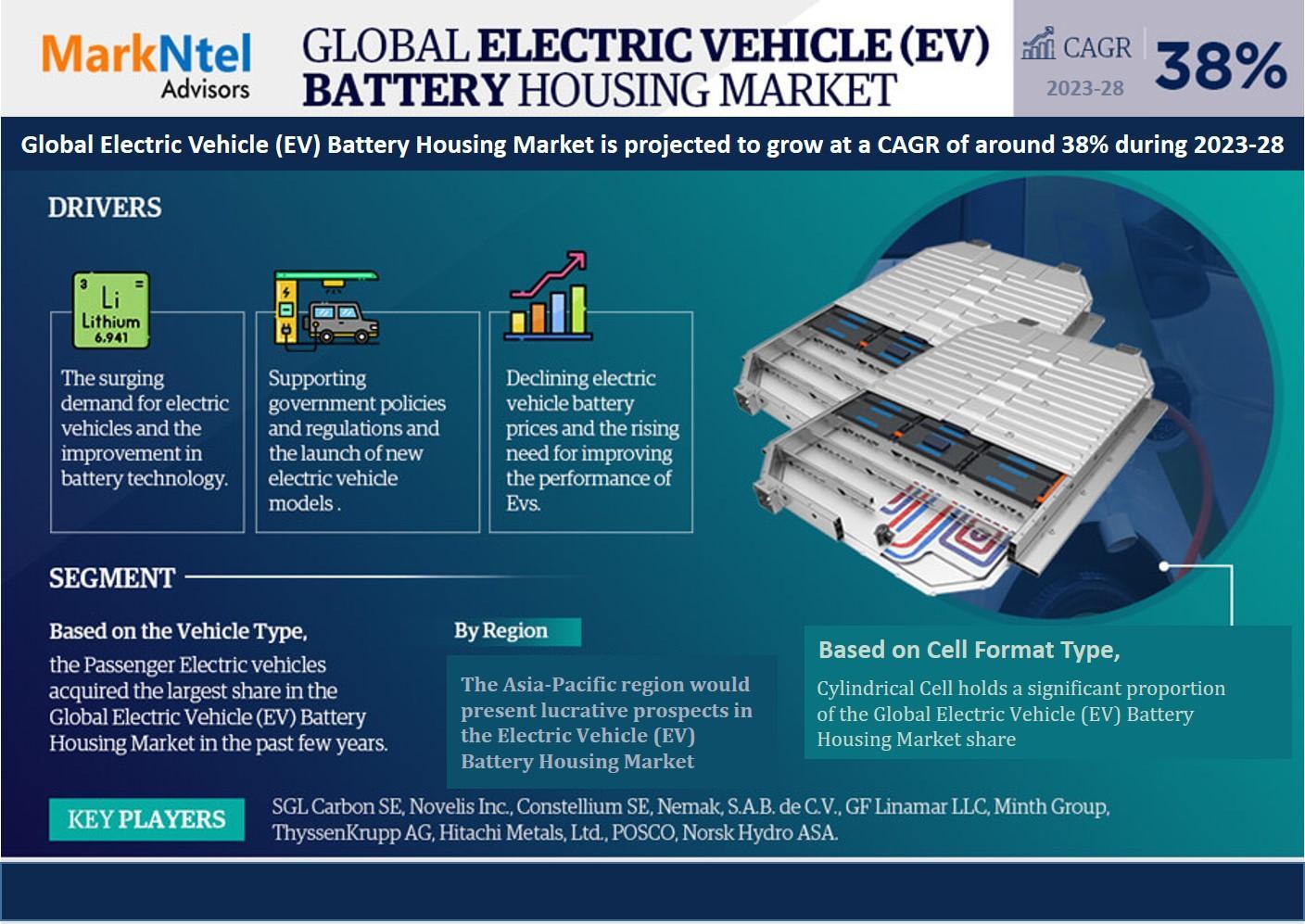 MarkNtel Advisors, a leading market research and consulting firm, has announced the release of its latest study titled Electric Vehicle (EV) Battery Housing Market Research Report: Forecast (2023–2028). This report provides a detailed assessment of the Electric Vehicle (EV) Battery Housing Market, covering its evolving dynamics, emerging trends, key growth drivers, major challenges, and competitive landscape.