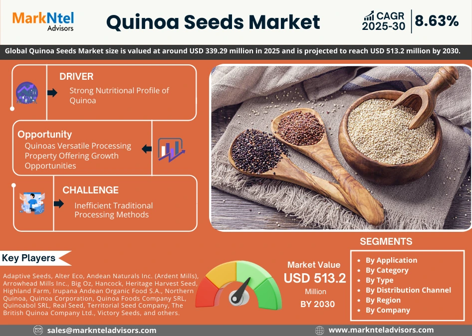 MarkNtel Advisors, a leading market research and consulting firm, has announced the release of its latest study titled Quinoa Seeds Market Research Report: Forecast (2025–2030). This report provides a detailed assessment of the Quinoa Seeds Market, covering its evolving dynamics, emerging trends, key growth drivers, major challenges, and competitive landscape.