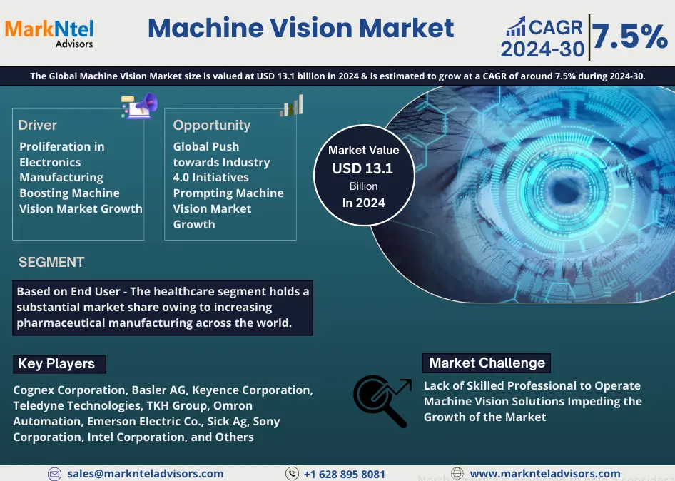 MarkNtel Advisors, a leading market research and consulting firm, has announced the release of its latest study titled Machine Vision Market Research Report: Forecast (2024–2030). This report provides a detailed assessment of the Machine Vision Market, covering its evolving dynamics, emerging trends, key growth drivers, major challenges, and competitive landscape.