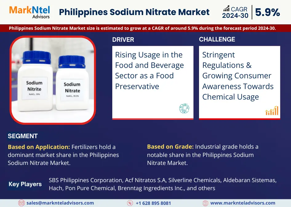 MarkNtel Advisors, a leading market research and consulting firm, has announced the release of its latest study titled Philippines Sodium Nitrate Market Research Report: Forecast (2024–2030). This report provides a detailed assessment of the Philippines Sodium Nitrate Market, covering its evolving dynamics, emerging trends, key growth drivers, major challenges, and competitive landscape.
