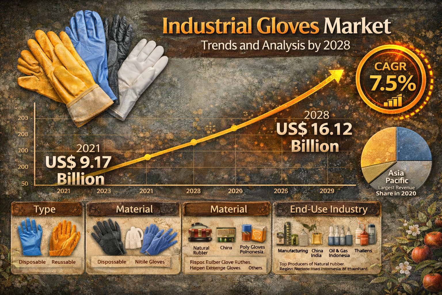 The industrial gloves market is undergoing a significant transformation as industries worldwide strengthen their focus on worker safety, operational efficiency, and regulatory compliance. Based on Industrial Gloves Market Trends and Analysis by 2028, the market was valued at US$ 9.17 billion in 2021 and is projected to reach US$ 16.12 billion by 2028, growing at a CAGR of 7.5 percent. This growth is shaped by several converging trends related to technology innovation, material advancement, and stricter industrial regulations.