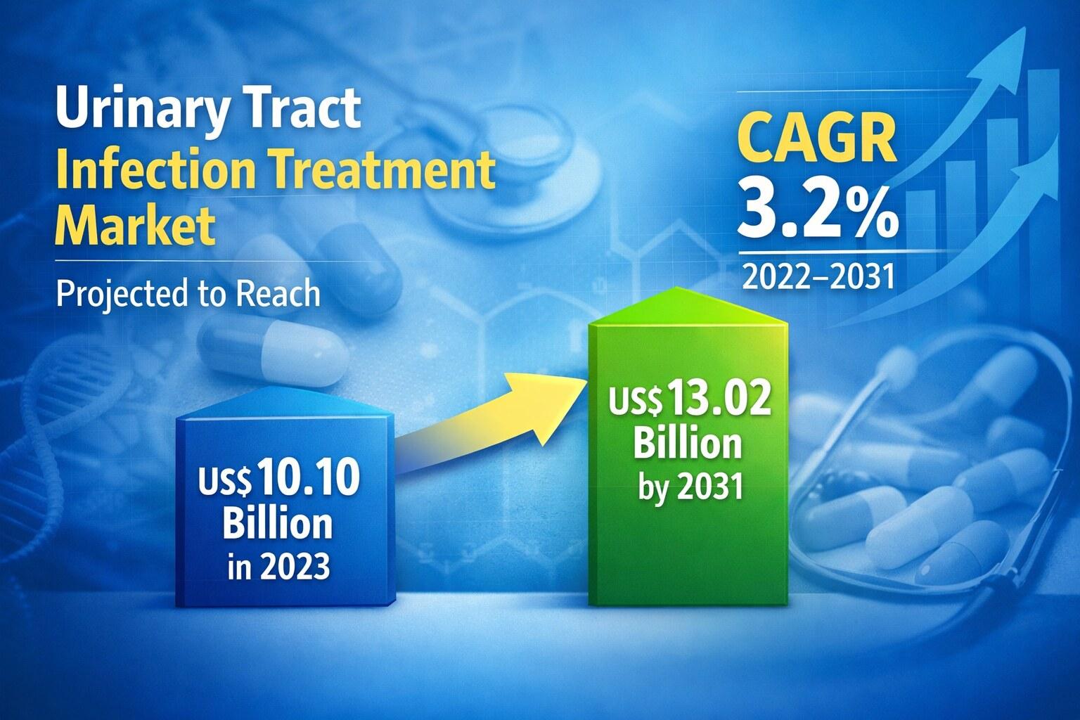 The global Urinary tract infection treatment market is set to witness stable expansion between 2026 and 2031, driven by rising infection prevalence and continuous advancements in diagnostic and therapeutic technologies. The UTI market is projected to grow at a CAGR of 3.2% and is expected to reach US$ 13.02 billion by 2031, up from US$ 10.10 billion in 2023. This steady growth reflects the sustained need for effective treatment solutions and preventive care strategies across healthcare systems worldwide.