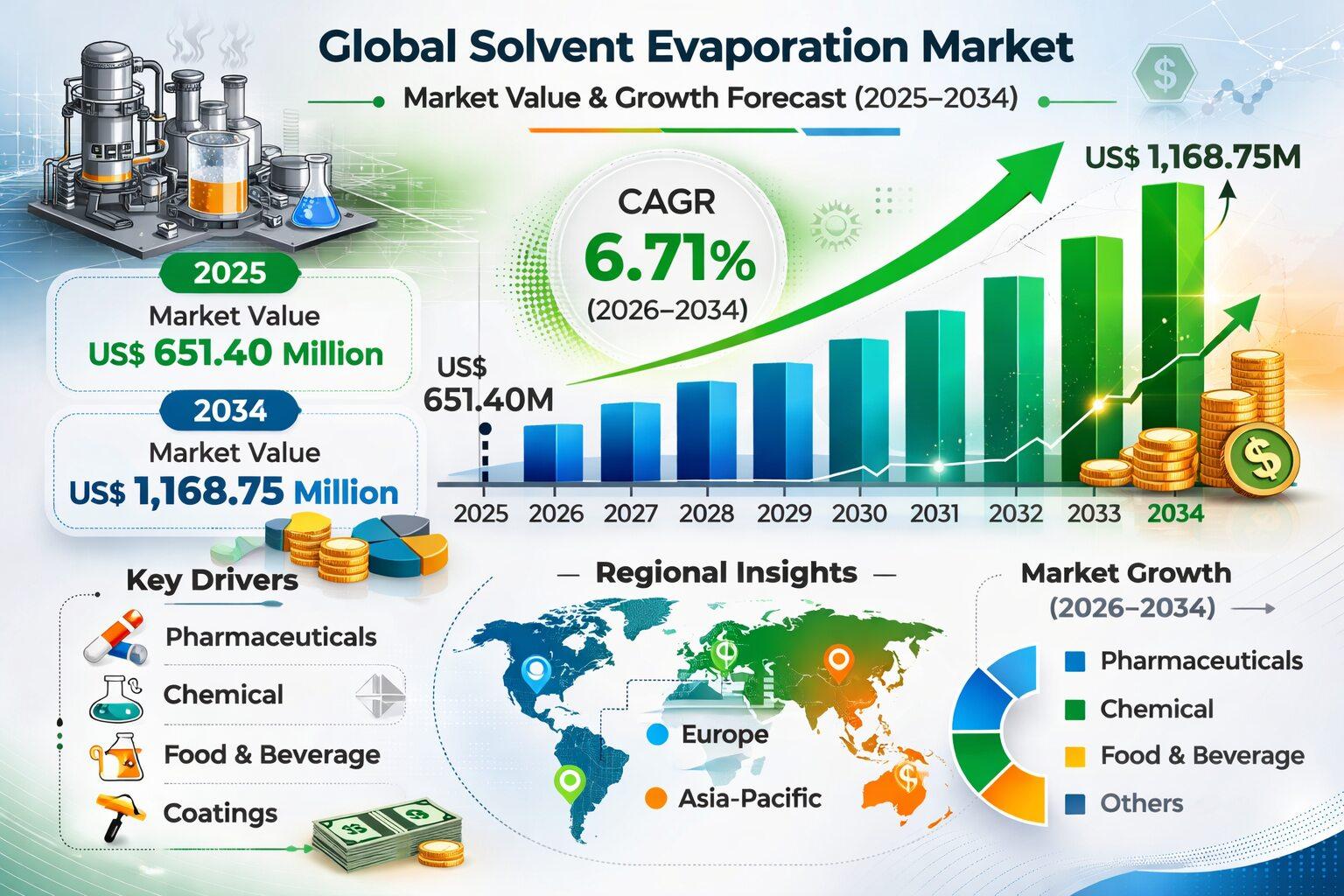 Solvent Evaporation Market Insights 2025–2034 | Global Outlook, Segment Dynamics & 6.71% CAGR