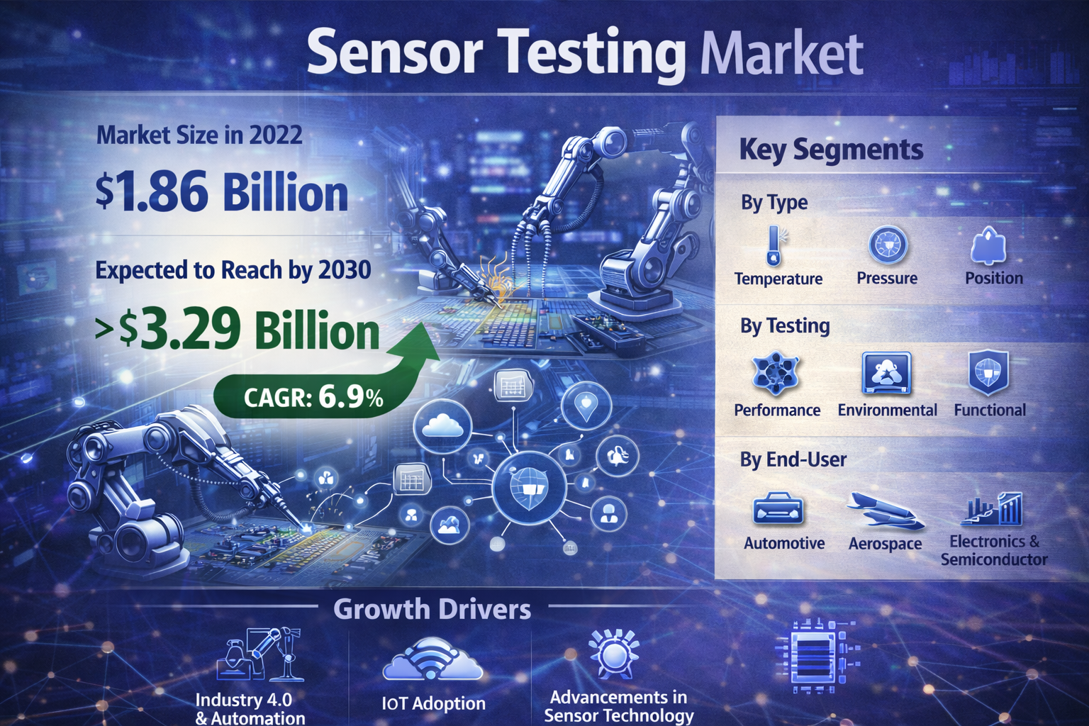 The sensor testing market is poised for substantial growth as the demand for reliable and efficient sensors continues to rise across various industries. Driven by the increasing focus on automation, advancements in sensor technologies, and the need for safety and compliance, sensor testing services are becoming essential for ensuring the functionality and reliability of sensors. While challenges such as high testing costs and complex procedures exist, the future outlook for the sensor testing market is bright. As organizations continue to prioritize sensor reliability and performance, testing solutions will play a critical role in supporting the advancement of sensor technologies and their applications in the modern world.