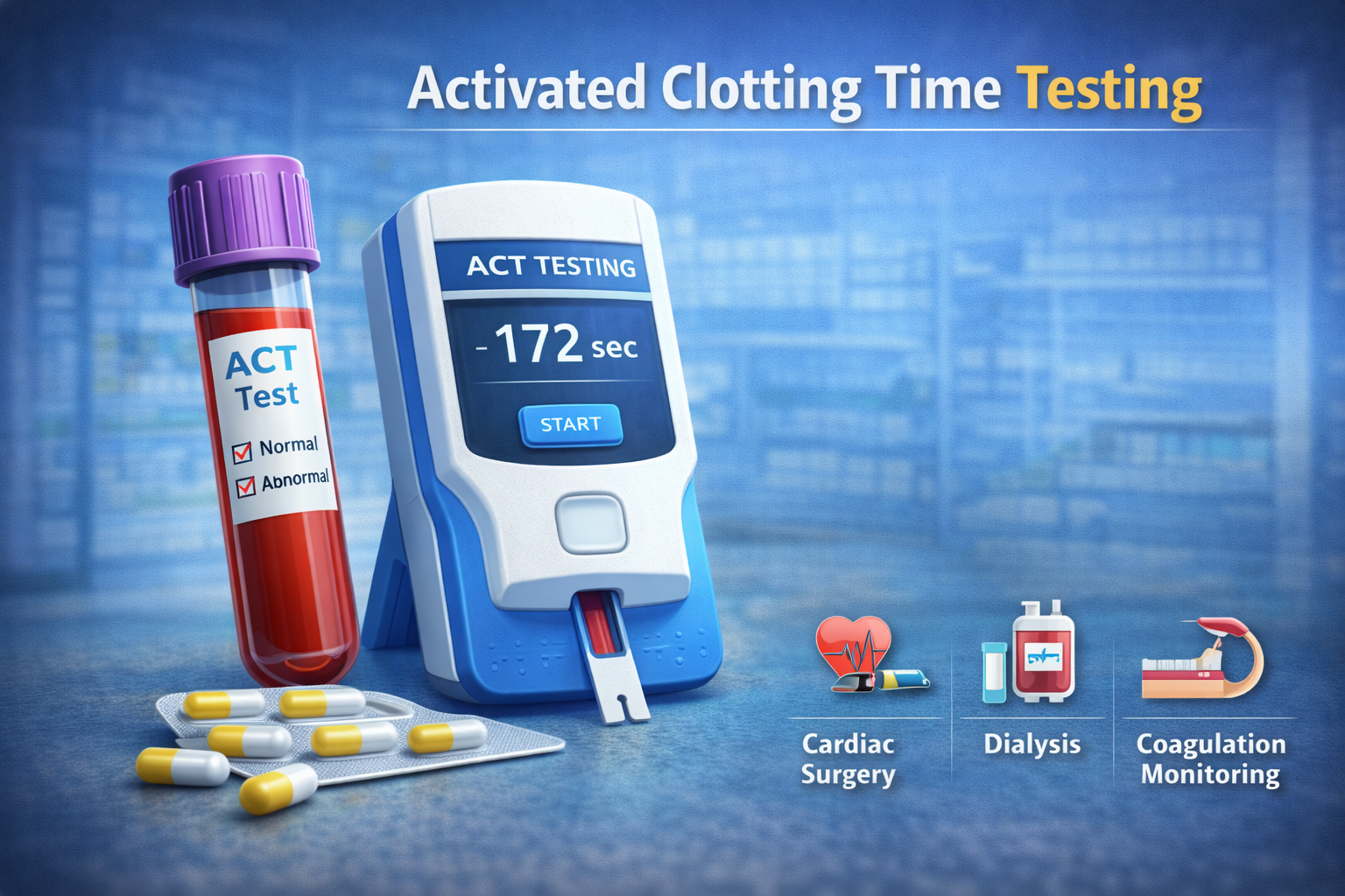 Activated Clotting Time testing plays a critical role in monitoring anticoagulation therapy during cardiovascular and vascular surgeries, extracorporeal membrane oxygenation (ECMO), cardiac catheterization procedures, and critical care settings. Unlike standard coagulation tests, ACT provides real‑time assessment of a patient’s blood clotting ability — a vital parameter for interventions that involve heparin administration and other anticoagulants. The rising number of invasive and minimally invasive procedures worldwide has significantly contributed to increased demand for ACT testing solutions across hospitals, specialized clinics, and laboratories.